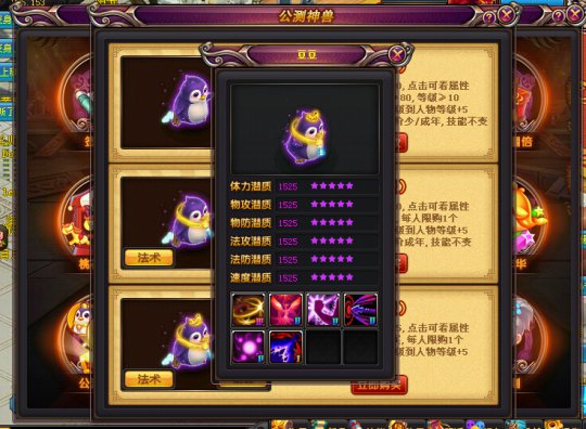 萌宠情缘 除开天族子女外,这次公测还带来五只全新的宠物,其中三只是神兽,两只稀有宝宝。稀有宝宝可以通过藏宝图方式获得,至于神兽夜煞和逍遥青牛,可以通过在神兽使者兑换获得,说到这里是不是感觉累感不爱,向小编这种平民玩家连宝图都挖不起的人来说,免费获得才是最好。然而这一切并不是梦,神兽豆豆居然可以随手可得?只要在在7月3日维护后-7月24日0点期间,所有等级达到10级以上的角色,并且当天活跃度达到80点以上,即可领取公测纪念版神兽"豆豆礼包"。 不要以为便宜没好货,幼年版的豆豆具有强力、必杀、精准三个超实用技能,潜质幼年只有1100,不过神兽可以通过进阶来改变潜质,达到成年版的豆豆潜质更是高达1525,绝对是男女老少首选神宠。值得一提的是,神兽豆豆分为物理和法术两种,玩家也可以根据自己的爱好经行选择。