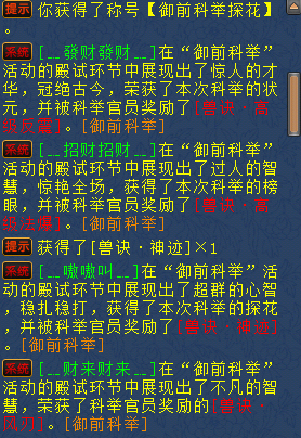 各位少侠们好呀~ 轻松愉快的趣闻时间到啦! 一起来看看最近少侠们 都分享了什么桃源趣事吧~ 今日下棋 油腻大叔2 下棋的那点趣事 这帮粉色的小兔子要摆什么阵法吗? 这是孙子兵法中的哪一集?!看见这么多的小兔,我竟然感受到了一丝害怕…… 今日宝宝 `·_光芒万丈ノ 456技能一本开,欧气散发! 不戳不辍!孺子可教也!!希望别的宝宝也要向这位学霸学习噢~~ 今日科举 ﹎嗷嗷叫﹎ 一个队伍的科举内卷,这年头没点文化还不能跟他们组队了。一门四杰 , 外加一个文盲~ 果真是近朱者赤近墨者黑~如此有书香气的队伍,桃源可能也就只此一支了!!各位官员们好!! 今日熔炼 凌芷冰 半夜十二点,看到仓库攒了有五百多瓶龙血,就洗洗装备,运气还算不错。 介就是传说中的半夜不睡觉,闷声发大财嘛~~队友一觉睡醒看见群消息,觉得天塌了~~~ |