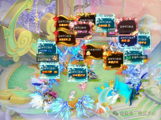 2025年接近尾声啦!! 本文工团小记者晴晴, 有幸组织了一场蓝神粉丝团群体采访小活动~ 蓝神是谁? 让我们带着疑问跟随小记者我, 了解一下蓝神粉丝团这个神秘的小群体吧~ 蓝神粉丝团见面会,场面略微混乱。 那就排排坐好吧~采访正式开始~ 小记者晴晴 大家一起来做个①自我介绍,②并说一说蓝神在你的眼中是什么样的人,以及你想对他说什么话呢?另外再一起③许下2026年的新年愿望吧! 天若有情-球球: 1. 大家好!我是蓝神的忠实粉丝,更是在桃花里摸爬滚打了七年多的资深玩家~从熬夜定闹钟抢boss、爆肝攒资源,到一路踩坑无数!直到找到了蓝神组织,才算彻底拨开迷雾!不管是避坑技巧、阵容搭配,还是那些容易被忽略的隐藏福利,一切都变得清晰明了!! 2. 他囤道具的架势堪比仓鼠囤粮,肝起活动来比谁都拼,就没见过对游戏这么较真的人。每个活动都扒得明明白白,连任务里藏着的小收益都不放过,精细到骨子里。当年没血公子还都能研究出打地狱八门的配置,这操作真的只能说一句太绝了!喂!蓝神,游戏先放放,终身大事该提上日程了,赶紧找个媳妇吧! 3. 恋蝶花语翅膀出现在抽奖里面,我队友手气爆棚抽到了,二话不说就悄咪咪丢我邮箱里! 缘定三生-龙葵: 1. 大家好我是缘定龙葵。 2. 我肯定是最早入团的粉丝!7年了!对蓝神的初印象是爱斗图的小可爱,现在的蓝神可凶了。 3. 2026希望蓝神能脱单and我的cp能结婚! 缘定三生-今汐: 1. 大家好我是缘定今汐。 2. 蓝神在我眼里高大威猛是我眼里的神,请把翅膀心都送给我最好的队友师傅傅。 3. 2026的新年愿望是给我爆点米,V我50请我吃KFC。 烁玉流金-雨不停: 1. 我是蓝神小粉丝。 2. 蓝宝石在我眼里就是神,我想对他说你是我的神。 3. 2026希望蓝神能请我吃饭。 凭栏听雨-奈何: 1. 是蓝神新进小粉丝。 2. 蓝神在我眼中就桃源百晓生.缘定区霸.玩家策划.科举状元.南山一哥.数据帝.桃花吉祥物.名动天下.两公子青华.超级禁锢.好心人.天子.比武大会冠军.桃花官方Q群管理.富甲泰斗.蓝宝石。希望陈伯一直伴随蓝神每个清晨。 3. 2026新年愿望是蓝神能请我找女模。 红尘绘卷-林嘟: 1. 大家好我是红尘林嘟 。 2. 从我开始玩这个游戏就久闻蓝神大名,接触后发现蓝神真乃桃园百晓生,这个称号简直是为蓝神量身定制。 3. 2026的新年愿望是蓝神成功脱单,以及,希望酒窝天天开心。 世外桃源-六子: 1. 大家好我是世外六子。 2. 蓝神是我偶像,原先就是看了蓝神在59,所以我才去59找偶像。 3. 希望2026年献祭蓝神,换个找个女朋友cpdd。 缘定三生-李逍遥: 1. 我是缘定的李逍遥。 2. 蓝宝石代名词:高大、威猛、魁梧、勇猛、双开门、智勇双全,我想对蓝宝石说:么么么么么么么么么哒。 3. 2026年祝蓝神牵手成家生娃二胎美满。 风花雪月-暧昧对象: 1. 来自风花雪月的暧昧对象。 2. 蓝神是个全能知识库,打的时候可以轻一点。 3. 祝蓝神下一年脱单! 冬日恋歌-醒醒: 1. 来自冬日的醒醒。 2. 蓝神桃源百晓生,吃瓜好搭档,祝福蓝神脱单发财吧。 3. 2026发大财,出神器。 缘定三生-祈月昭昭: 1.大家好我是缘定三生的祈月昭昭。 2.对蓝神的印象:帅。(这条评论虽然只有短短的一个字,却透露出一丝高冷与漫不经心的从容,和蓝神放纵不羁的身影相得益彰,结尾的句号礼貌又不失疏离感恰如其分显示了蓝神高贵而优雅的气质) 3.蓝神早日相亲成功。 冬日恋歌-敲敲: 1. 大家好,我是冬日恋歌小敲仔。 2. 蓝神真的是桃花的百晓生,问他什么都会,还很细节,有问必答!希望蓝神坚持下去,早日脱单! 3. 2026年祝所有人都健健康康,平安喜乐! 红尘绘卷-酒窝: 1. 蓝神是百科全书。 2. 盲剑客早日5启3。 3. 咩咩早日蹲到漂亮号。 冬日恋歌-雷霆: 1、冬日最菜战魂,逆鳞1霸体3神迹的战魂雷霆。 2、桃花第一人,蓝神蓝神,我的超人。 3、2026年能少点miss。 红尘绘卷-卷卷凉: 1.大家好,我是冬日/红尘的卷卷凉,是一位桃花外观狂热收集者(现在不是了) 2.刚认识蓝神的时候觉得他的名字非常有意思,蓝宝石可值钱了,小小蓝宝石居然说值钱,结果现在已经绝版,确实是无价之宝了[旺柴],虽然和蓝神认识的时间不长,在平时的沟通和接触中感觉到蓝神是一个特别有想法、思维特别缜密、又乐于助人的理工男,除了工作就是桃花[阴险]蓝神在桃花的道路上一去不复返,对桃花源记是真爱无疑了。很佩服玩59等级的玩家,蓝神就是其中之一,在很多活动中等级低还是有不少劣势,但是在蓝神眼中这些都不是事儿,抵挡不住蓝神对桃花的热爱,从普通玩家逐渐成长为稀有F1/F2/F3玩家,这也是目前大部分养老玩家的现状~当然蓝神和普通玩家还是有门槛的,蓝神可是59至尊亚军,四强守门员!总而言之~蓝神永远是我桃花的偶像(没有之一)蓝神狂热(黑)粉就是我! 3.希望蓝神能找到对象!!!!! 小记者晴晴 好哒,粉丝团的小伙伴们都很热情呢! 祝蓝神早日脱单,让我们喊起来嗷! 接下来,有请 2025年科举殿试春季赛冠军 2025年科举殿试夏季赛冠军 2025年科举殿试秋季赛冠军 2025年科举殿试冬季赛冠军 (喘气) 2025年找你妹春季赛冠军 2025年找你妹夏季赛冠军 2025年找你妹秋季赛冠军 2025年找你妹冬季赛冠军 (大口踹气) 2025年雪球大王春季赛冠军 2025年雪球大王夏季赛冠军 2025年雪球大王秋季赛冠军 2025年雪球大王冬季赛冠军 (缺氧) 2025年新秀组六道FMVP ?LTL人气选手FMVP 五开五公子阵容FMVP获得者 (掐人中) 缘定三生59大神,