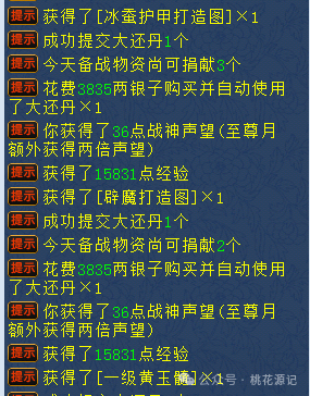 今日合成 小小小小浪花° 终于合出来了! 这大概就是,坚持不懈、必有回响吧!恭喜少侠终于获得聪明宝宝~~祝打书也一路顺! 今日队友 —━☆鸿宇づ 队友今天这是要召唤怒龙吗(什么时候我也有这么好的运气) 淡定淡定,好运总会来的!现在重要的是,快快把地上的袋子捡起来,蚊子再小也是肉,积少成多也是笔小横财哟~~ 今日挖宝 财迷°初心黑丝 我太难了,这些年头一次挖麒麟图纸挖出超级涅槃,必须纪念下! 据说有第一次,就会有更多次的超级涅槃到来哟~~~等待少侠的第二次投稿!! 今日物资 阿芷吖″ 想发家致富吗?和我一起捐物资呀。每日十次,捐不了吃亏捐不了上当~ 原来发家致富的密码是捐物资呀!听说非至尊月每天晚上19.20.21点整,会部分城里刷至尊物资呢,突然感觉没去捡亏大发了~ 今晚小桃花就要开始捡咯,你们可别来抢哦~~ |